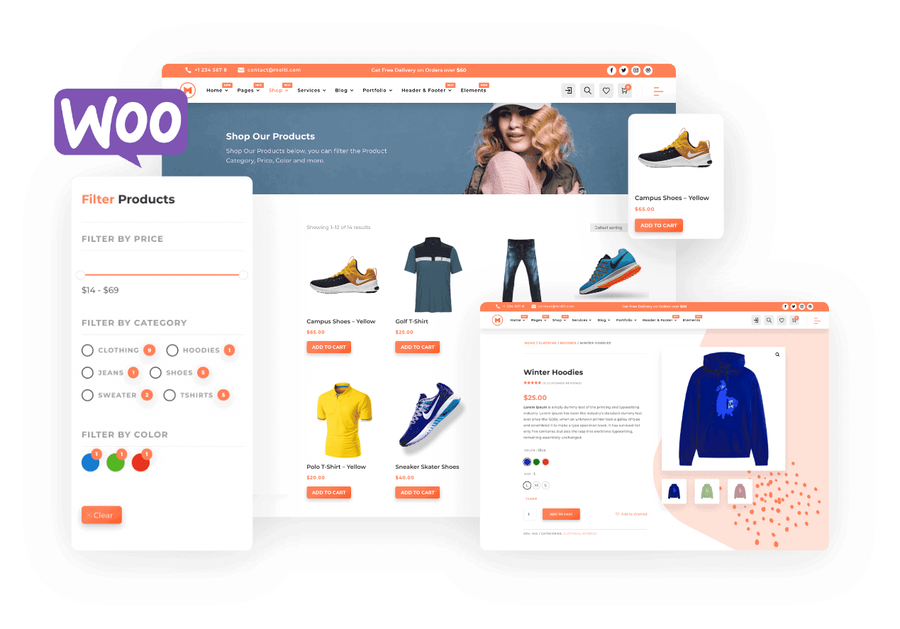 The Molti Ecommerce provides you many stunning Design for your next Ecommerce site/Store with WooCommerce. With many hover effects, Stunning Functionalities and never before seen features will make you say WOW!